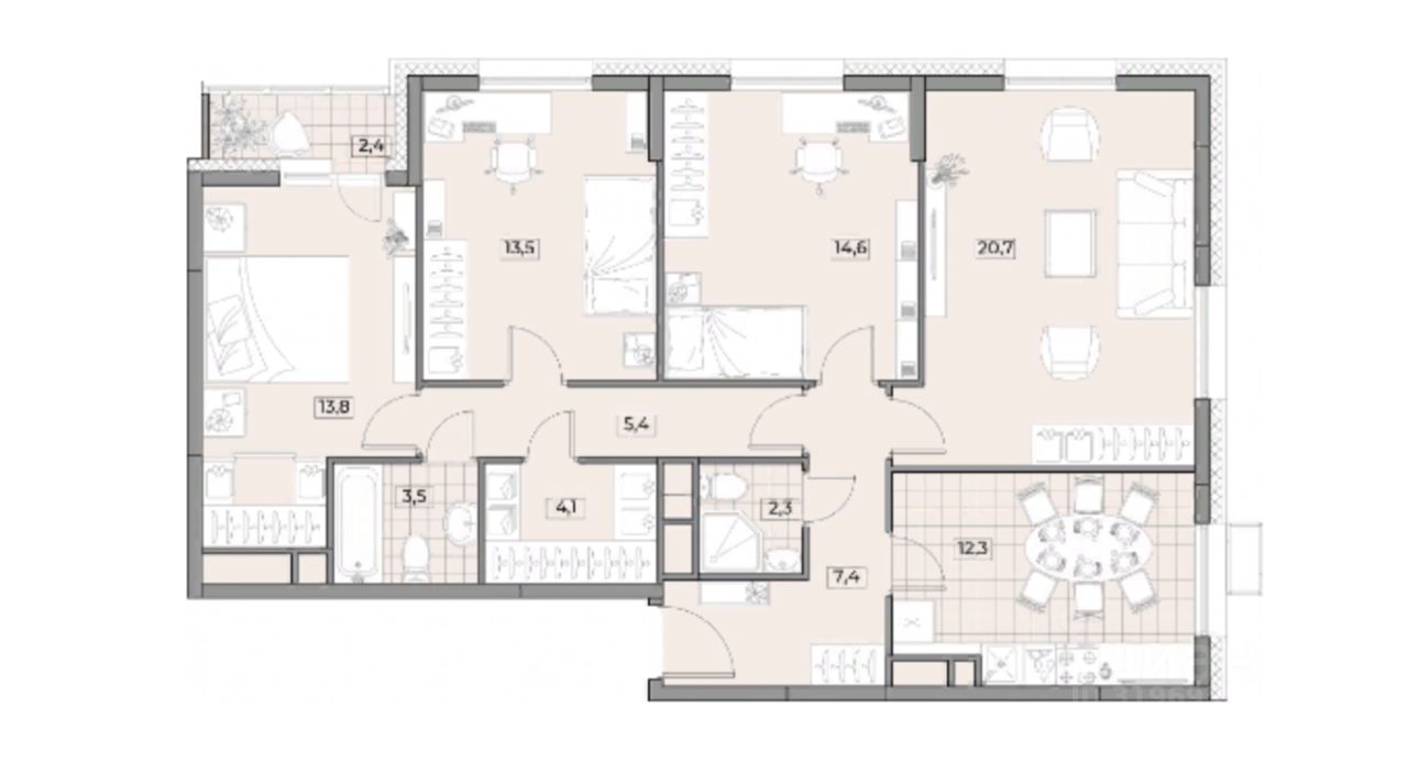 Продается 4-комн. квартира без отделки в современном ЖК Вестердам!