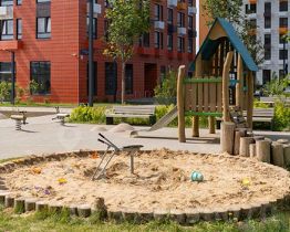 В проекте предусмотрена медленная зона для электросамокатов — с 7 утра до полуночи при въезде на территорию квартала скорость электросамокатов автоматически снижается до 15 км/ч. Артикул 976507 (Застройщик АО "Специализированный застройщик "Волжский парк"")