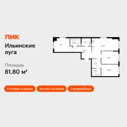 Продаётся 3-комн. квартира площадью 80,5 кв.м на 5 этаже 9 этажного дома (Корпус 2.13, Секция 2) проекта ПИК Ильинские луга. Светлый просторный подъезд на уровне земли, функциональная планировка, большие окна, c отделкой.