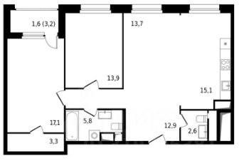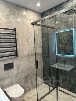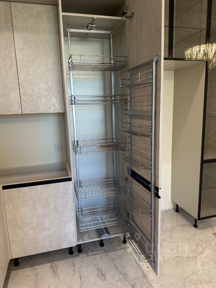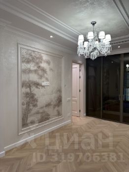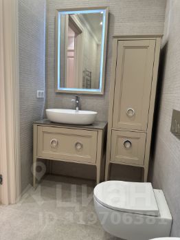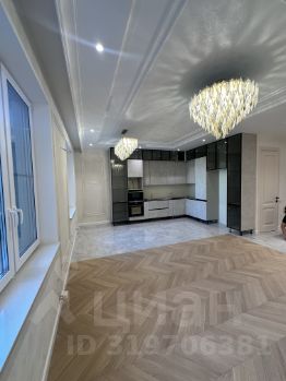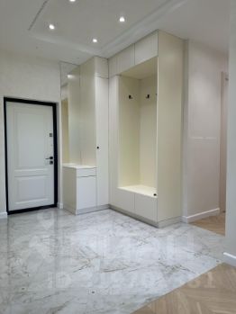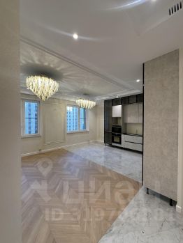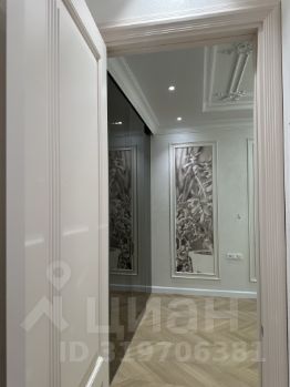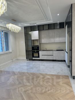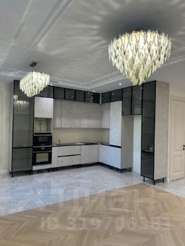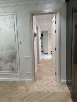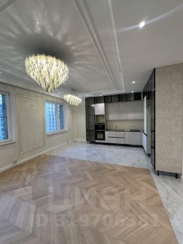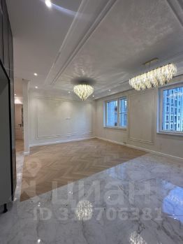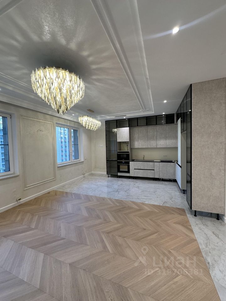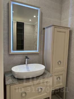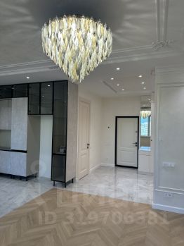 Этаж 11. Окна смотрят во двор. Общая площадь 92 м². Два санузла. Спальня с гардеробной. Совмещенная кухня-гостиная. Ремонт выполнен из дорогих материалов. Высота межкомнатных дверей 2,4м. Подоконники из натурального камня. Готовая кухня включает в себя: духовой шкаф, микроволновую печь, посудомоечную машину, смесители, мойку, систему фильтрации воды. Система кондиционирования установлена. Радиаторы отопления, светильники настенные прилагаются.