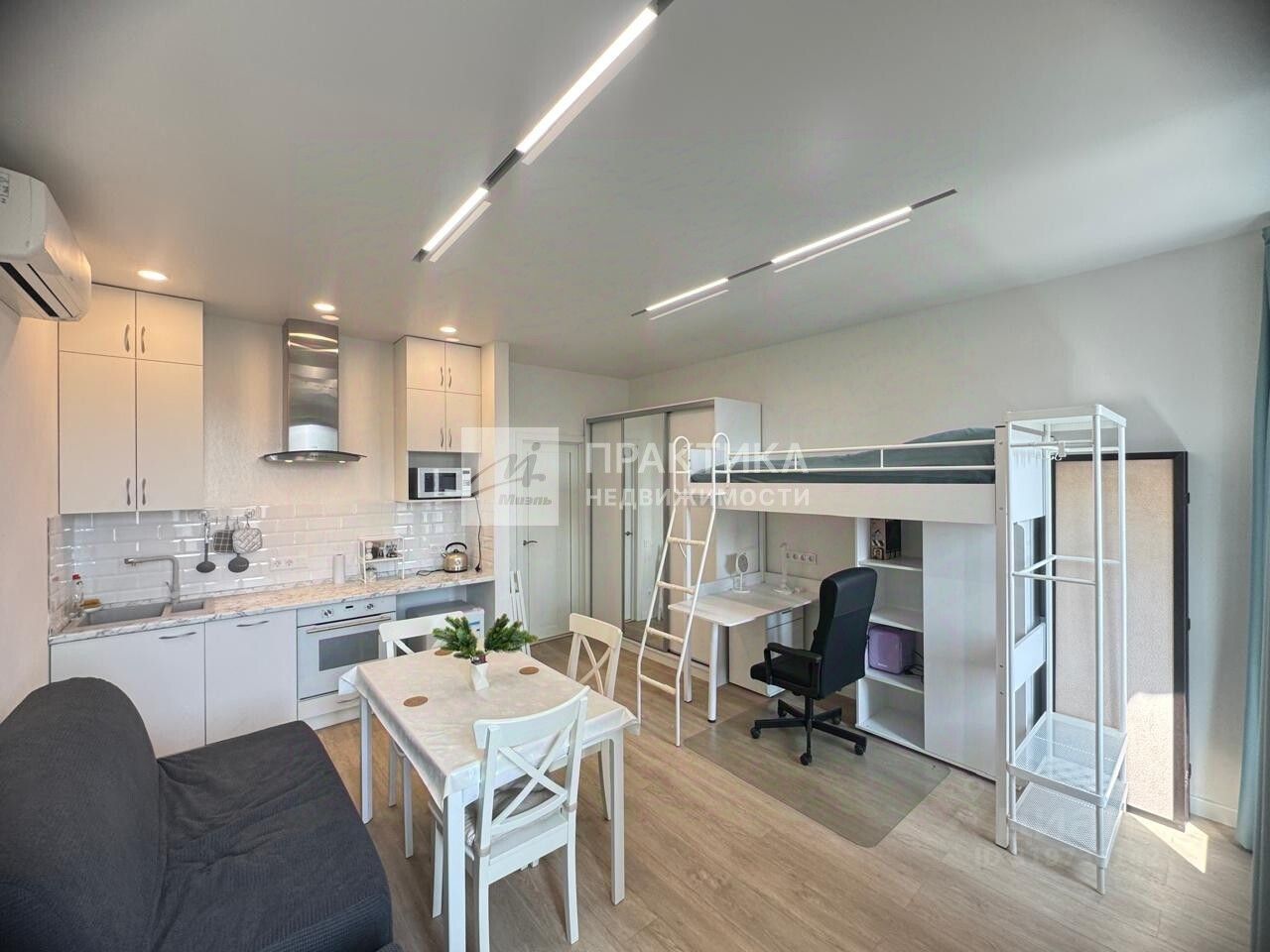 Общая площадь — 29,1 кв. м, из которых 18,9 кв. м занимает жилая площадь. Студия оснащена евроремонтом, что позволяет сразу заселиться без дополнительных вложений. Высота потолков 2,8 м создаёт ощущение простора и свободы. Эта студия совсем не отличается от однокомнатных квартир.