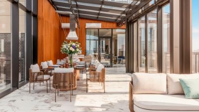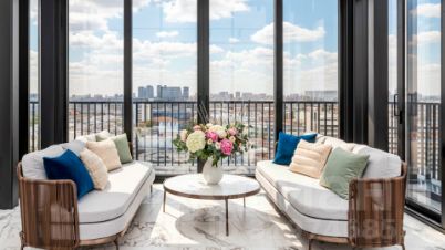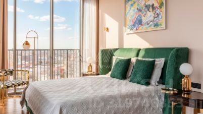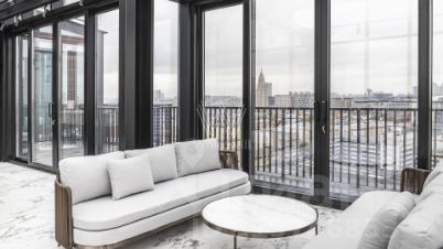 Видовой пентхаус в комплексе бизнес-класса Soho+Noho в районе Беговой. Пентхаус общей площадью 400 м² занимает весь 20-й этаж. Выполнена дизайнерская отделка в современном стиле, на полу уложены паркетная доска и плитка с фактурой мрамора. Интерьеры укомплектованы мебелью от брендов Fendi, Casa, Minotti и техникой Kuppersbusch. Установлены системы теплый пол и центрального кондиционирования.