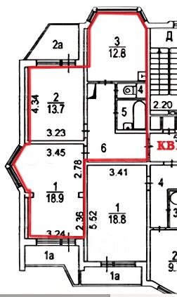Общая площадь 59 м2 (дополнительно две застекленные лоджии (4,6 м2 + 3,8 м2), жилая площадь 32,6 м2 (комнаты изолированные, с лоджиями — 18,9 м2 и 13,7 м2), кухня — 12,8 м2 с эркером, санузел раздельный с ванной. Распашонка (oкна выxодят нa южную и северную стороны).