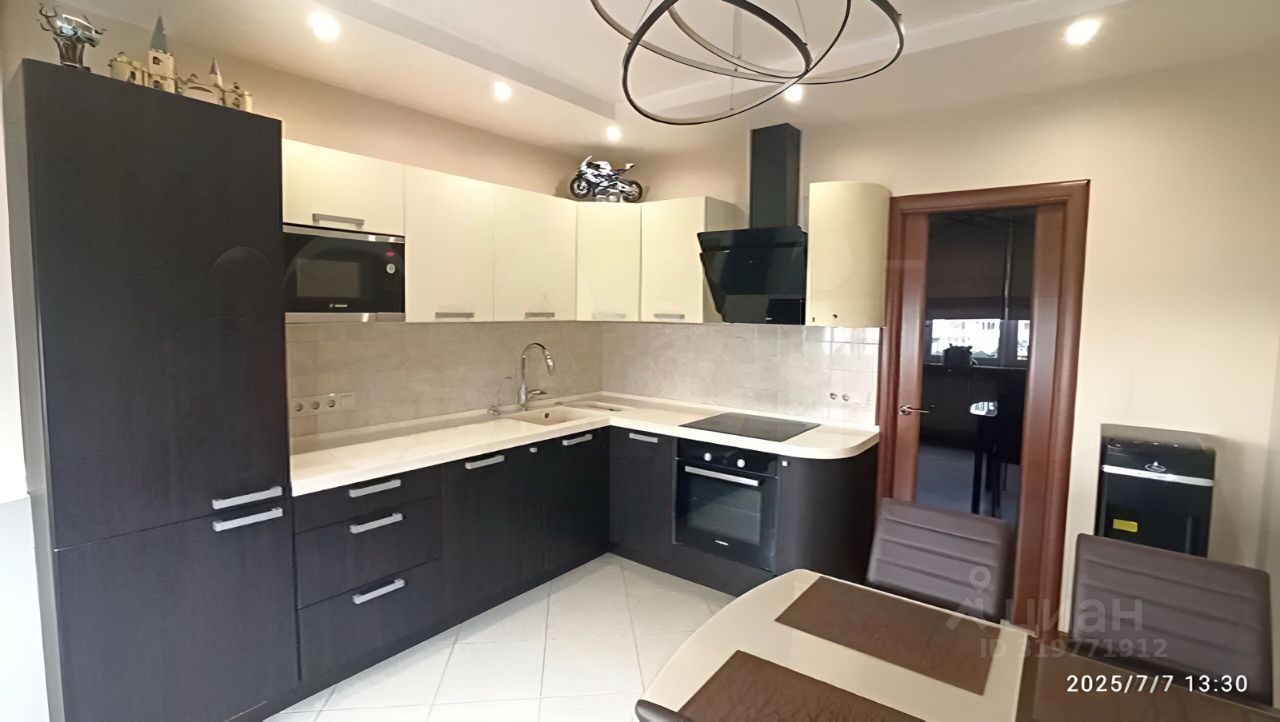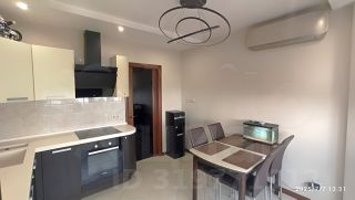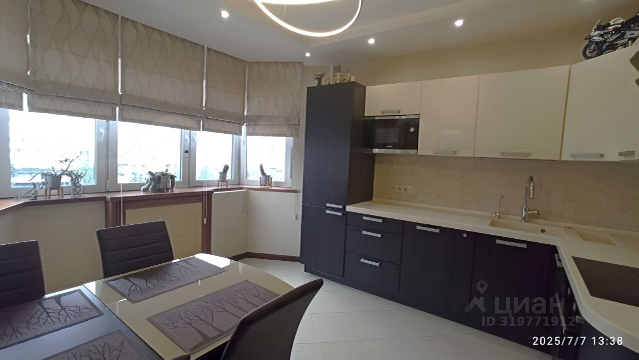Окна пластиковые, современные радиаторы отопления. Пол — плитка (с теплым полом) и паркетная доска. Двери и подоконники деревянные. Стены — обои. Потолки 2,7 м2, с вариативным освещением. Установлены кондиционеры. Встроенная кухня с встроенной техникой Bosch (холодильник, варочная панель, духовка, микроволновая печь, посудомоечная машина). Шкафы-купе в спальне и прихожей.