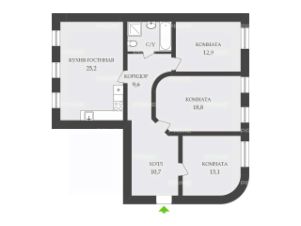 Комфортное планировочное решение: прихожая, кухня-столовая-гостиная, спальня, большая гардеробная, с/у с ванной и душевой, кабинет.