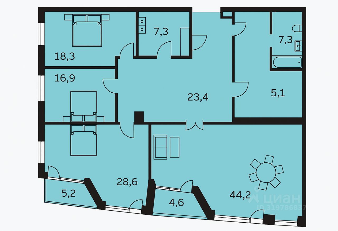 3 изолированные спальни