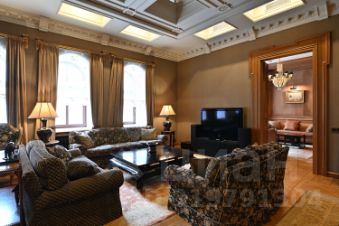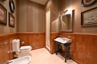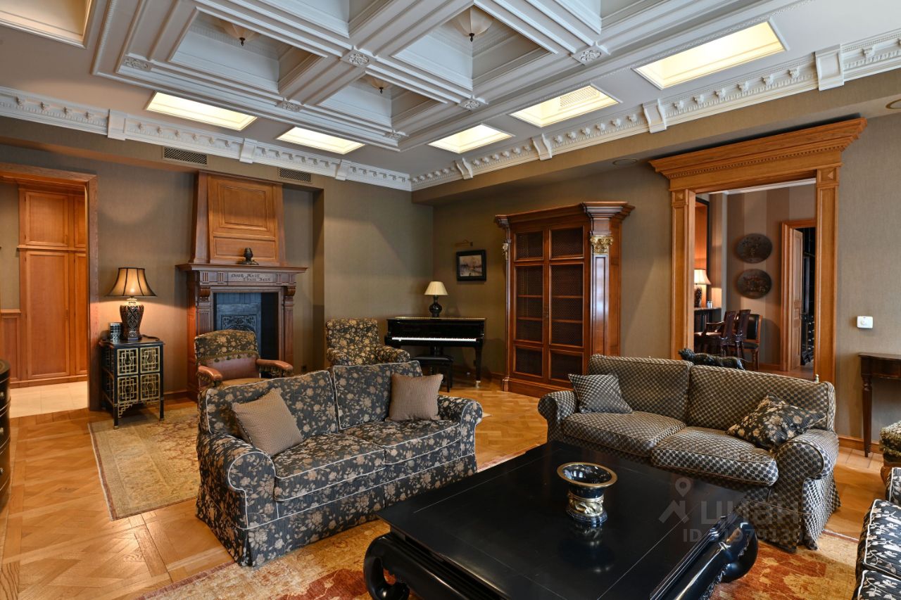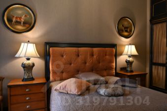 Планировочным решением предусмотрено: гостиная с декоративным камином, кухня-столовая, мастер-блок со своим санузлом и гардеробной, спальня, кабинет, caнузел. Квартира полностью меблирована и оборудована бытовой техникой от лучших мировых производителей. Интерьер в стиле американской классики декорированный антикварными предметами искусства и мебели. Окна выходят в тихий внутренний двор и на посольство Бельгии.
