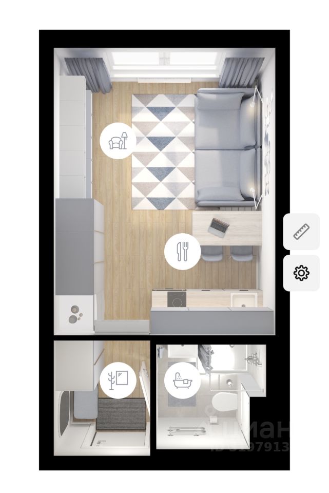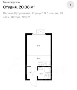 Видовая студия с отделкой в ЖК "Первый Дубровский", корпус 1.3, этаж 23, общей площадью 20.08 кв.м.