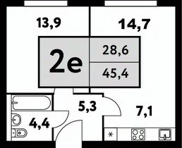 Наиболее удобный вариант планировки однокомнатной квартиры, её особенность - максимально эффективное использование площади квартиры. Просторная кухня-гостиная позволит вам с комфортом разместиться и принимать гостей у себя дома, а великолепные виды из широкоформатных окон на Березовую аллею и тихий благоустроенный двор дополнят преимущества квартиры.