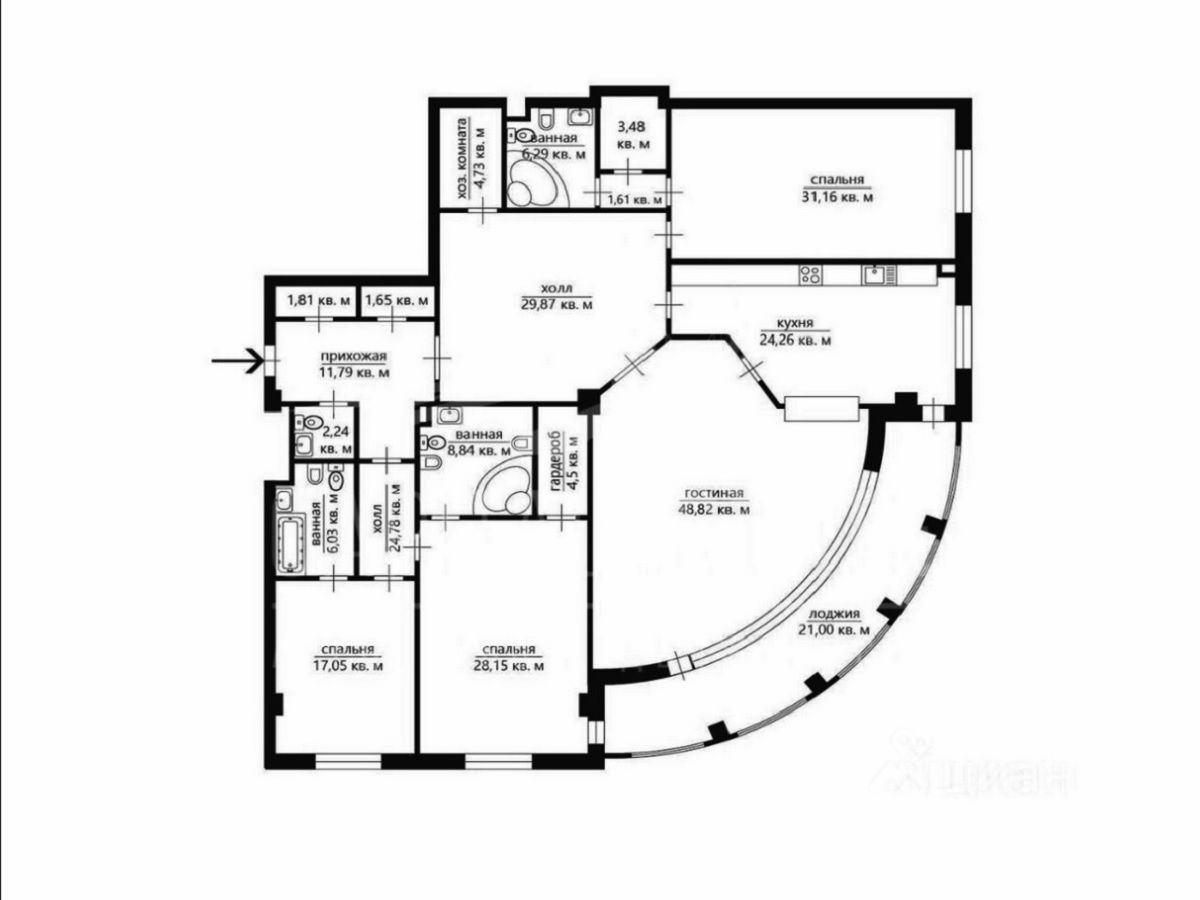 Простор для реализации любых дизайнерских идей — квартира без отделки с высокими потолками и свободной планировкой