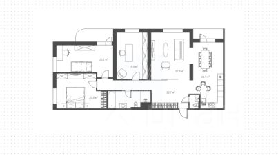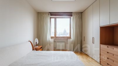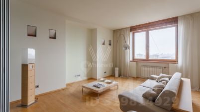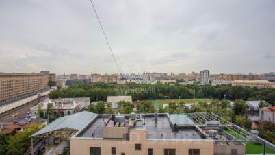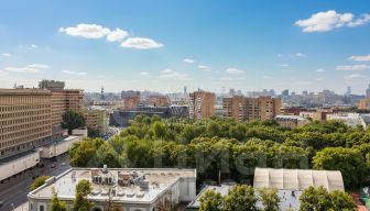 Планировка: гостиная, кухню-столовая с выходом на лоджию, две спальни, кабинет, который можно оборудовать как спальню, два санузла, балкон и холл. Окна ориентированы на две стороны. Виды на МИД, памятник Петру I, сквер Девичьего поля.