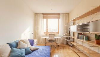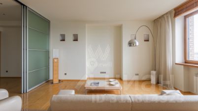 Просторная квартира с тремя спальнями в доме на 1-м Тружениковом переулке 17 на 13-м этаже. Выполнена отделка с использованием натуральных материалов из Германии и Италии. Высота потолков 3 метра. Квартира укомплектована бытовой техникой и итальянской мебелью от брендов Giorgetti и Tresserra.