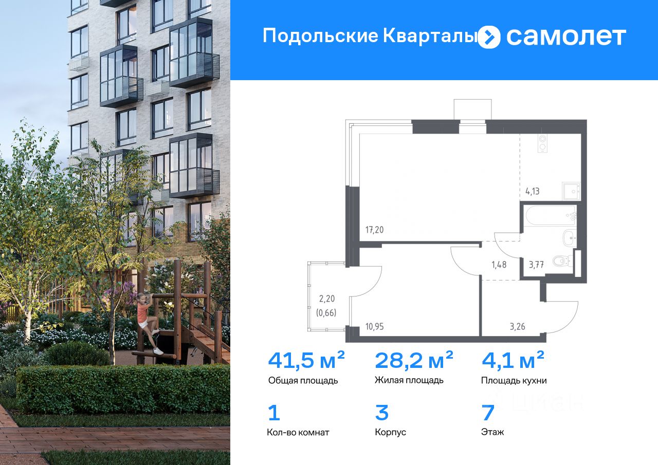Предлагается 1-комнатная квартира комфорт-класса 41,45 кв.м в корпусе 3 на 7 этаже, в ЖК "Подольские Кварталы"