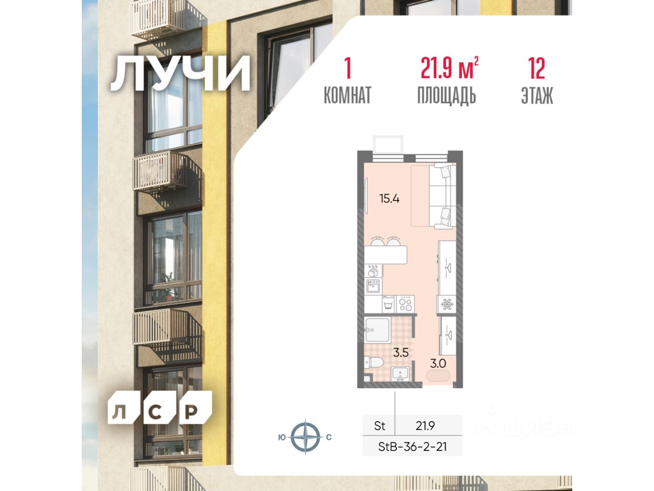 Общая площадь21,9 м²