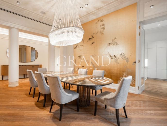 Просторная квартира с 3-мя спальнями общей площадью 287 м² в особняке "Пречистенка 13" в Хамовниках. Квартира с дизайнерским ремонтом расположена на 5-м этаже в корпусе 1. Выполнена отделка в стиле неоклассики с использованием высококачественных материалов — премиальная керамическая плитка, мрамор, паркет из ценных пород. Высота потолков 3,8 метра. Квартира полностью меблирована и укомплектована бытовой техникой.