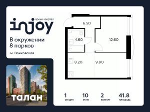 Прямая продажа от застройщика. В жилом квартале, расположенном в Войковском районе Москвы, продаётся 2-комнатная квартира площадью 41.8 кв.м без отделки. Квартира расположена на 10 этаже 35-этажного дома, корпус 1, в жилом квартале бизнес-класса INJOY.