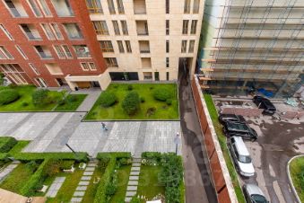 Планировка включает: зону прихожей с гардеробной и гостевым санузлом, кухню-гостиную с лоджией с панорамным остеклением, две спальни с ванными комнатами и гардеробными, а также в мастер-спальне имеется выделенная зона кабинета или гардеробной. Окна выходят во внутренний двор. Квартира светлая и тихая.