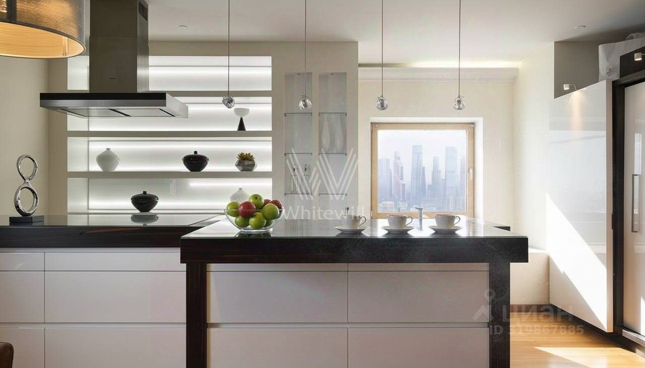 Интерьер укомплектован мебелью на заказ и техникой Samsung, Electrolux, Miele.