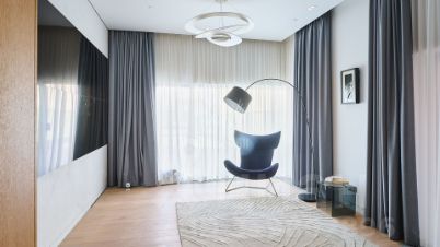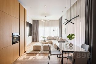 Видовые апартаменты с двумя спальнями в комплексе премиум-класса Red7. Апартаменты с готовой чистовой отделкой площадью 114 м². Функциональная планировка включает кухню-гостиную, мастер-спальню со своей ванной комнатой и гардеробной, вторую спальню, гостевой санузел и холл. Благодаря панорамному остеклению пространство наполнено естественным светом и теплом, открываются виды на город и благоустроенную территорию комплекса.