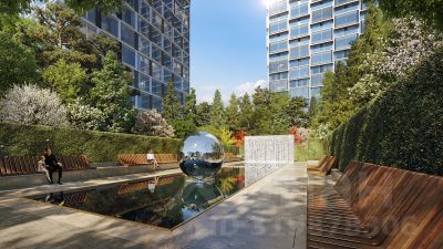 Архитектура от именитого бюро ADM отличается уникальной пластикой фасадов - башни словно парят в воздухе, играя гранями как драгоценные камни. Жилой комплекс состоит из 5-ти небоскребов с home park на закрытой территории и внешней торговой галереей с открытым доступом.
