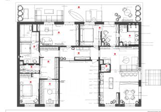 - Квартира с продуманной эргономикой и разделена визуально на два блока: в правой части зона родителей/ взрослых и в левой части зона детей/ гостей.