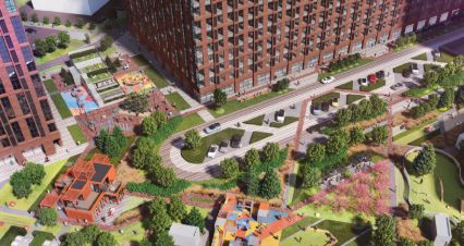 Комплекс состоит из 4х разноэтажных корпусов, максимальной высотой 25 этажей, закрытая обособленная территория 2,7 Га, с подземным паркингом, на первых этажах коммерческая инфраструктура, полупанорамные окна - 40 см от пола.