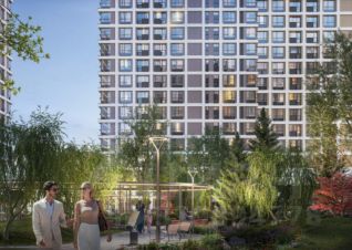 Просторная квартира свободной планировки со всеми преимуществами продуманного бизнес-класса: просторные санузлы, большая кухня-гостинная, спальня с угловым остеклением, подземный паркинг и три минуты до метро.