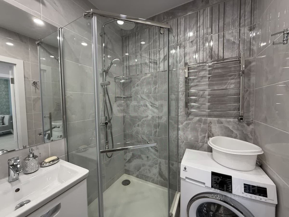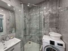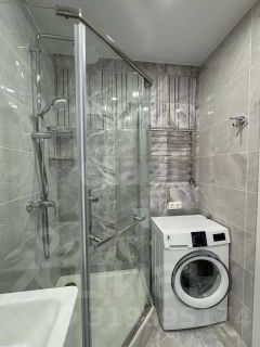 Санузел — современный, в качественной плитке, установлена новая сантехника. Все шторы — пошив на заказ.