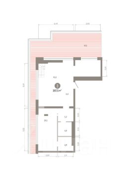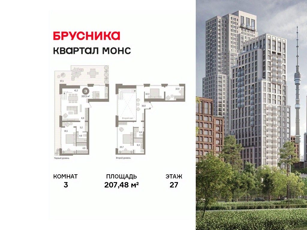 Двухуровневая квартира с кухней-гостиной и тремя спальнями в квартале "МОНС". Особенности планировки: второй санузел, окна в пол, без отделки, двухуровневая, пентхаус, панорамное остекление, разнесённые спальни, мастер-спальня, терраса на крыше.