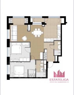 - Две изолированные спальни, одна из них с отдельной гардеробной, просторная кухня-гостиная, два санузла: совмещенный и раздельный, лоджия