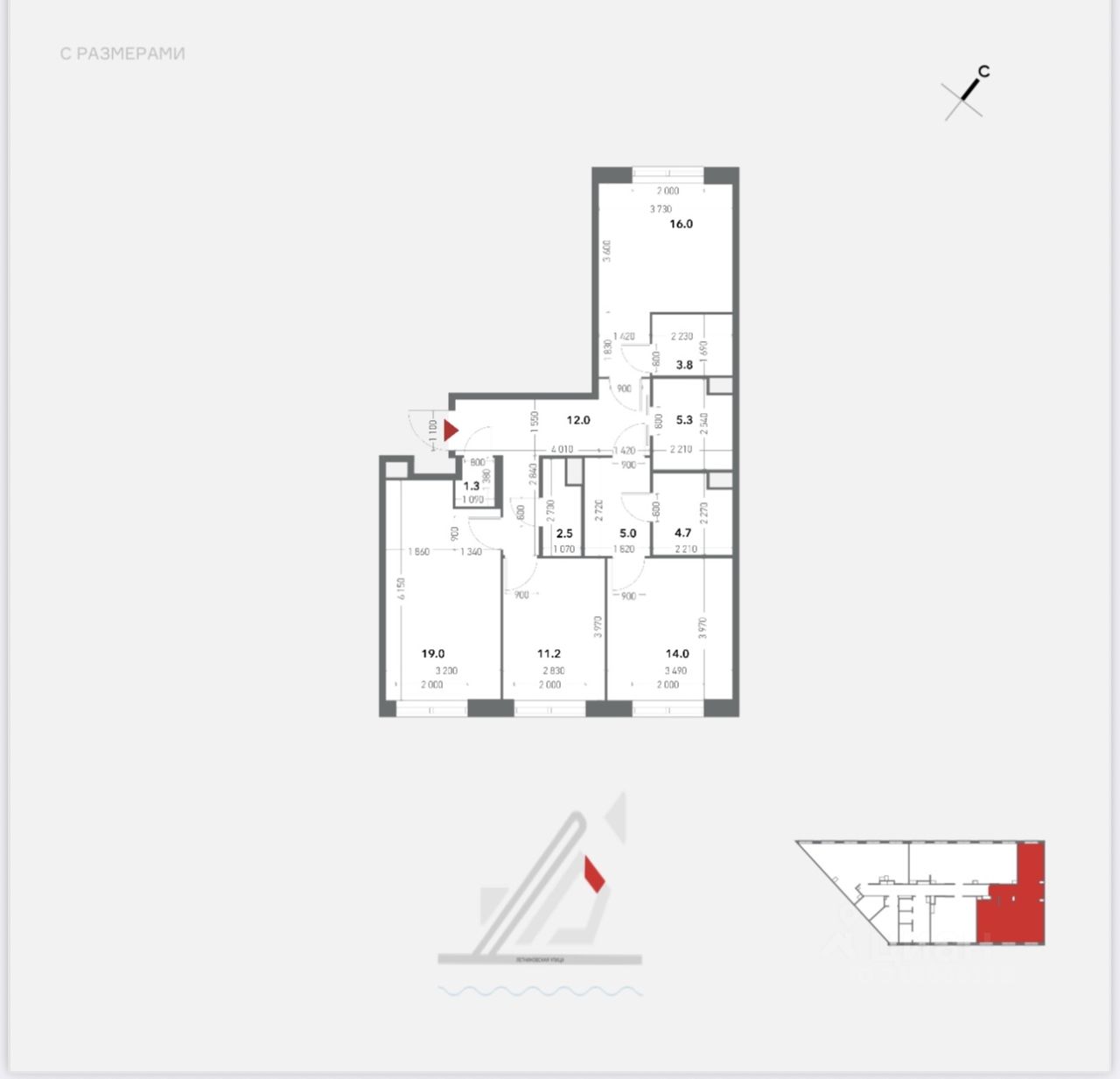 19 м²