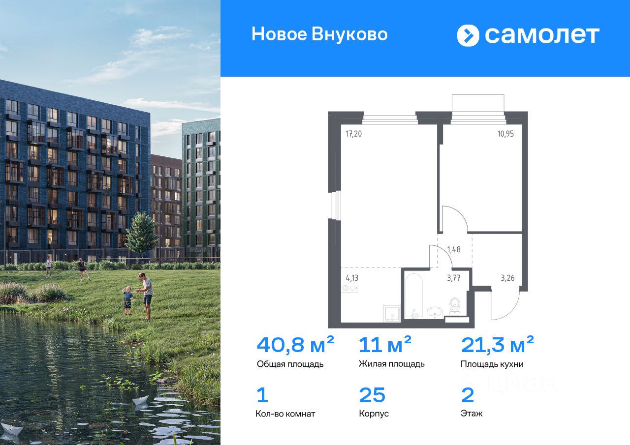 Предлагается 1-комнатная квартира комфорт-класса 40,79 кв.м в корпусе 25 на 2 этаже, в ЖК "Новое Внуково"