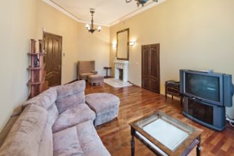 Гостинная имеет оригинальный антикварный камин работы фабрики Кузнецова!