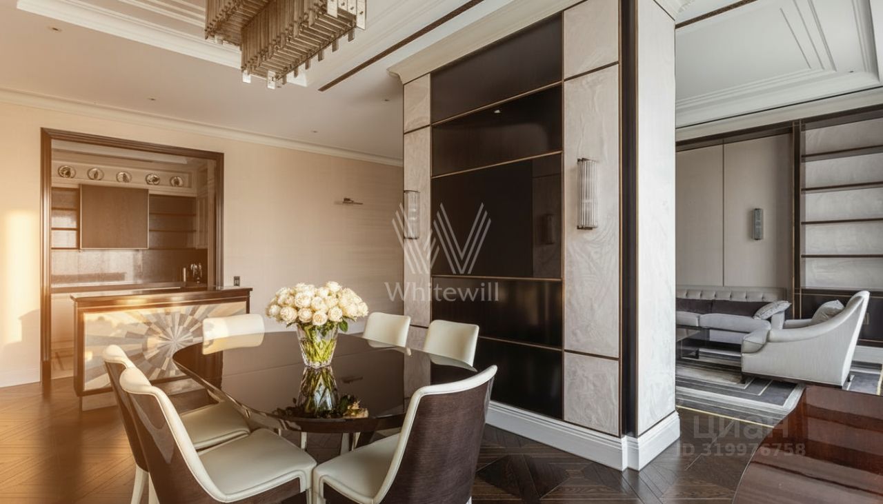 Просторная квартира с тремя спальнями в комплексе премиум-класса "Четыре ветра". Квартира площадью 186 м² расположена на 9-м этаже. В оформлении использованы высококачественные материалы, такие как мрамор и дерево. В интерьере присутствуют многоуровневые потолки и карнизы.