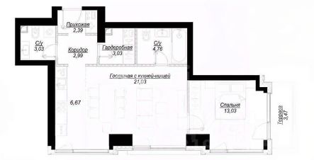 Продается просторная двухкомнатная квартира площадью 58,7 м² в премиальном жилом комплексе "Hide" ("Хайд").