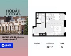 Продаётся 1-к квартира 22.7 кв.м. на 17-м этаже 22 этажного дома, корпус 3 - Резиденция "Краснодар". Без отделки.