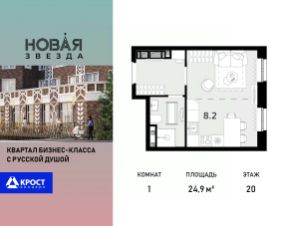 Продаётся 1-к квартира 24.9 кв.м. на 20-м этаже 22 этажного дома, корпус 3 - Резиденция "Краснодар". Без отделки.