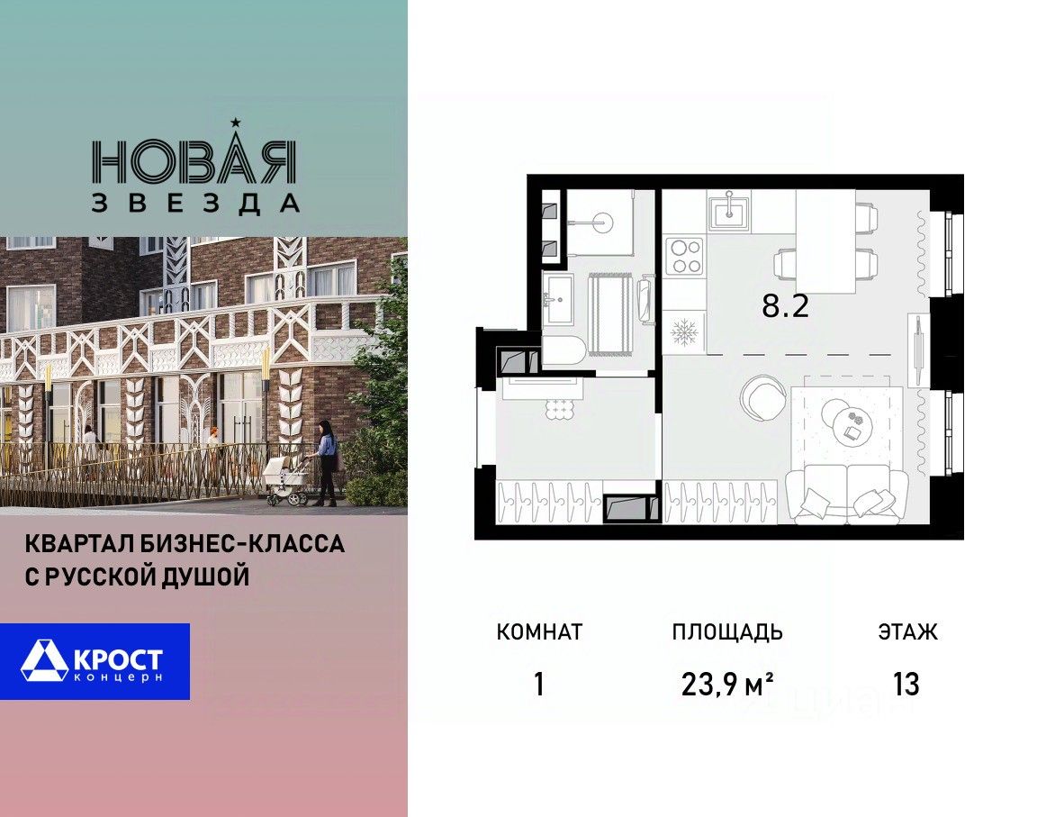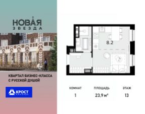 Продаётся 1-к квартира 23.9 кв.м. на 13-м этаже 22 этажного дома, корпус 3 - Резиденция "Краснодар". Без отделки.