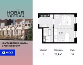 Продаётся 1-к квартира 24.9 кв.м. на 18-м этаже 22 этажного дома, корпус 3 - Резиденция "Краснодар". Без отделки.