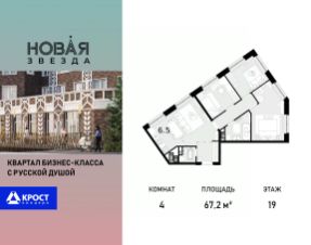 Продаётся 4-к квартира 67.2 кв.м. на 19-м этаже 22 этажного дома, корпус 3 - Резиденция "Краснодар". Без отделки.