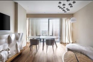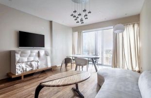 Панорамное остекление открывает захватывающие виды на столицу, наполняя пространство естественным светом и энергией.
