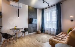 Яркая и комфортная зона отдыха с ТВ (смарт тв) и WI-FI. Квартира оборудована всей необходимой техникой для отдыха и проживания.
