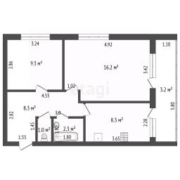 В квартире раздельные ходы в комнаты, кухня 8.3 кв.м.