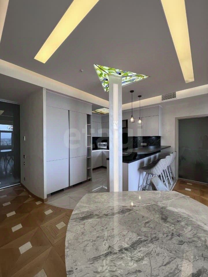 Вашему вниманию предлагается изумительная четырехкомнатная квартира в ЖК "Триколор" площадью 157м². Квартира расположена на высоком этаже с панорамным остеклением, обеспечивающим обзор на город.