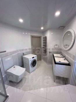 Гостевой санузел и просторная ванная комната оснащены премиальной сантехникой (TOTO, итальянские смесители), душевой кабиной с тропическим и массажным режимами, финской сауной, джакузи с панорамным видом. Зеркала с LED-подсветкой, мебель для ванной и кухни импортирована из Германии.