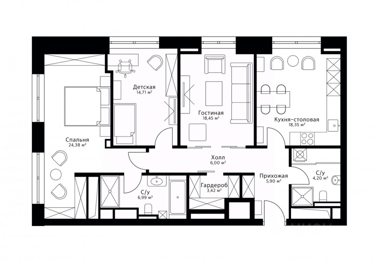 Квартира продается с мебелью и техникой, полностью готова к проживанию.