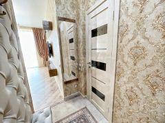 Не смотря на не большую площадь - квартира полностью укомплектована всем необходимым и при этом здесь есть простор, который создается за счет двух панорамных окон. А также несомненное преимущество - это удивительно эргономичная ванная комната, где есть ванна, душ и еще дополнительный шкаф для хранения всех мелочей.