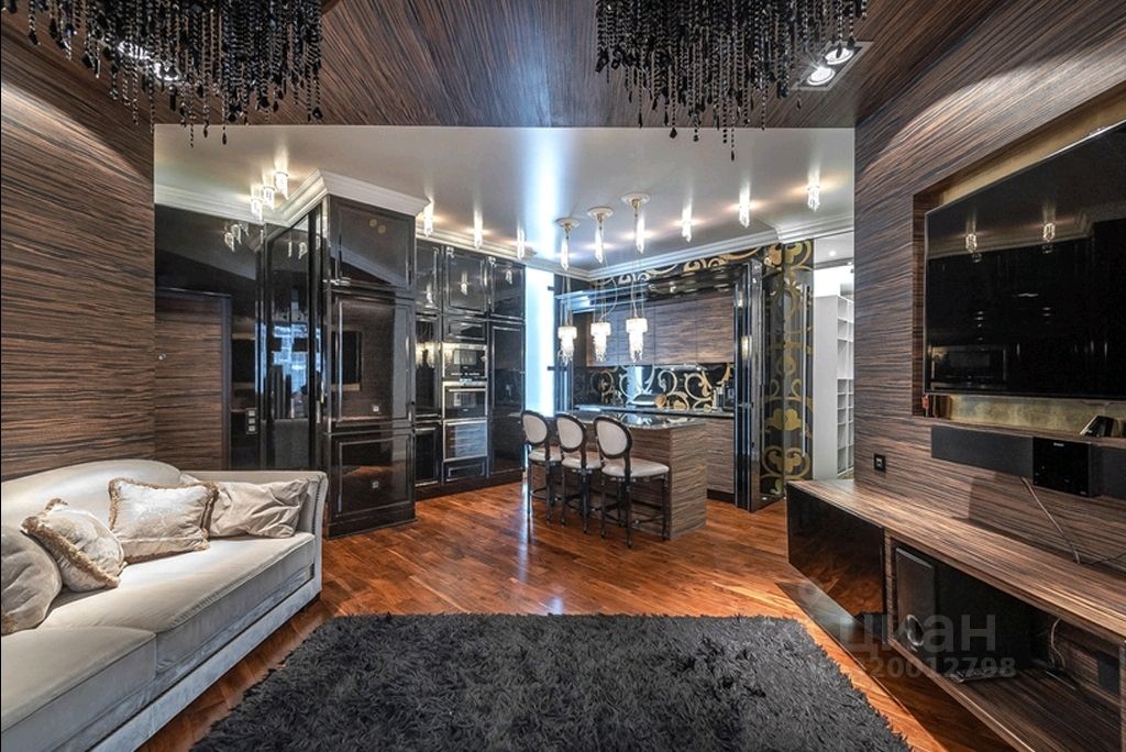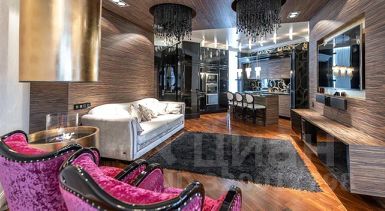 В отделке и интерьере использовались только материалы премиального сегмента и никаких компромиссов. Биокамин придает дополнительный уют. Панели в гостинной и фасады кухни шпонированы эбеновым деревом, вечный и не выходящий из тренда материал. Свет: творение венецианских мастеров от Barovier&Toso- каскады из муранского стекла, от ITALAMP в лаунж-зоне, от Baga над кухонным островом. Мебель: итальянского производства.