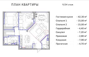 Вашему вниманию предлагается трехкомнатная квартира в премиальной отделке по дизайн-проекту в стиле Ар-Деко. Архитектурное решение пространства безупречно в плане эргономики и функциональности. Панорамные окна и высокие потолки наполняют пространство воздухом и светом. Большое открытое пространство кухни-гостинной, две изолированные спальни, гардеробная, просторная ванная комната, кладовая с возможностью переоборудования в санузел.