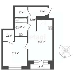 - удобная планировка: Кухня - гостиная 15,6кв.м с выходом на лоджию, спальня 11,4 кв.м с отдельной гардеробной комнатой, с/у совмещенной.